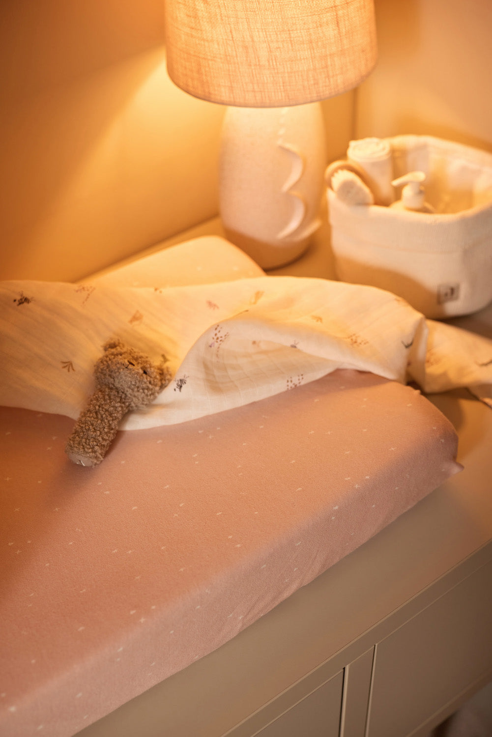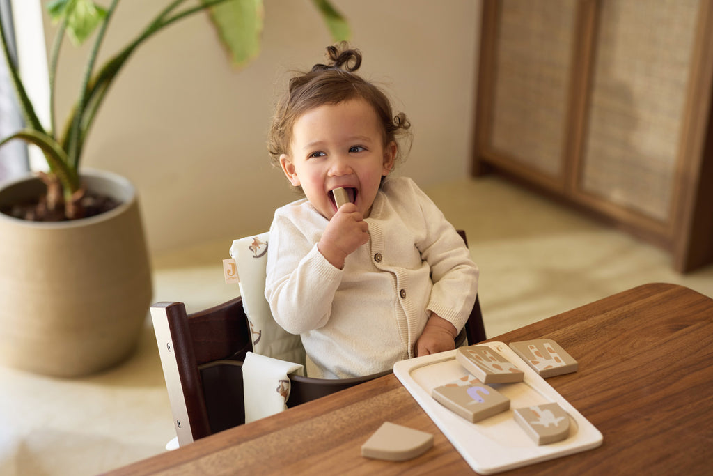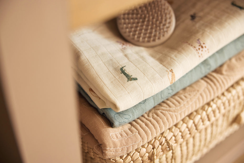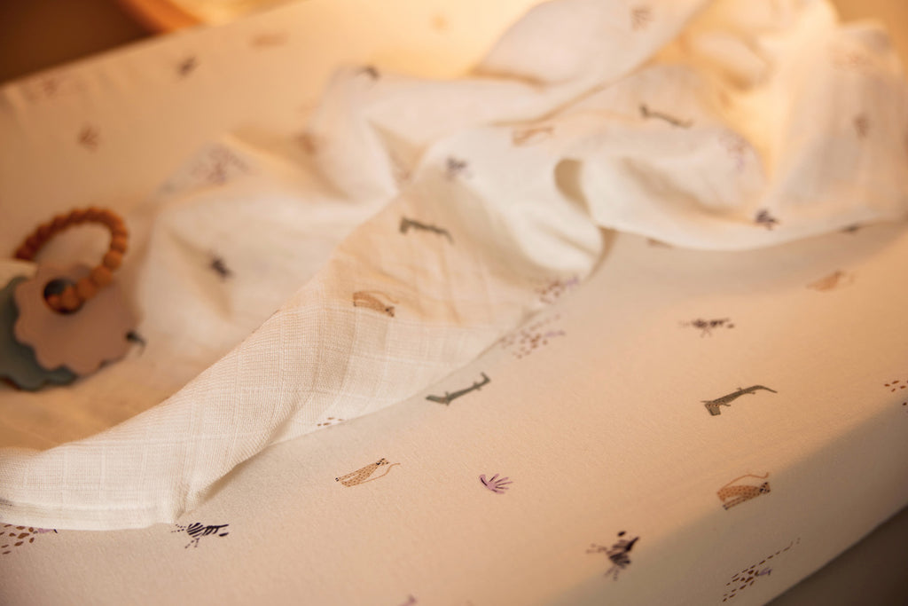 In Jungle Jambo, the wilderness comes alive with cute jungle animals that will pique your little one's curiosity. This print is infused with the joy and vibrancy of the jungle, where little adventurers will make their first discoveries. Think of playful giraffes, cheerful elephants and mischievous monkeys that transform the baby's room into a tropical paradise. Trendy yet timeless, this jungle print brings a touch of adventure to the latest interior designs for nurseries. The warm colours such as Biscuit, Corn and the calming Ash Green create a calm but playful environment. You will find this print on duvet covers, sleeping bags, highchair cushions, bibs, blankets and muslin cloths. This makes it super easy to implement this fun theme throughout the entire nursery! Does this print perfectly become your cool little one? Take a quick look at all the cool items in the Jungle Jambo theme!
