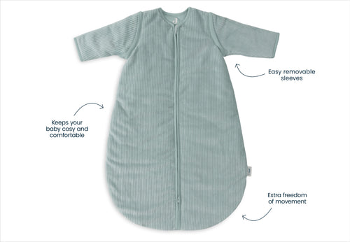Looking for the ultimate sleeping experience for your little one? All our sleeping bags are made of wonderfully soft and breathable material and feature the trendiest prints, specially designed by our design team, so your little one can always sleep in style, whatever the season. All sleeping bags also feature a secure and comfortable zipper to make putting on and taking off as easy as possible. So from newborn minis to naughty toddlers and from balmy summers to cold winters, we'll make sure your child sleeps well! This wonderful baby sleeping bad has detachable sleeves. This is how you transform it from a TOG value of 3.5 for cold winter days to a TOG value of 2.5 for chilly nights in spring and autumn. Buy this sleeping bag in different colours and in 70, 90 and 110 cm! So you're guaranteed to find the perfect fit for your little one. Is the sleeping bag not yet warm enough? You can combine this sleeping bag with one of the lovely blankets from Jollein.