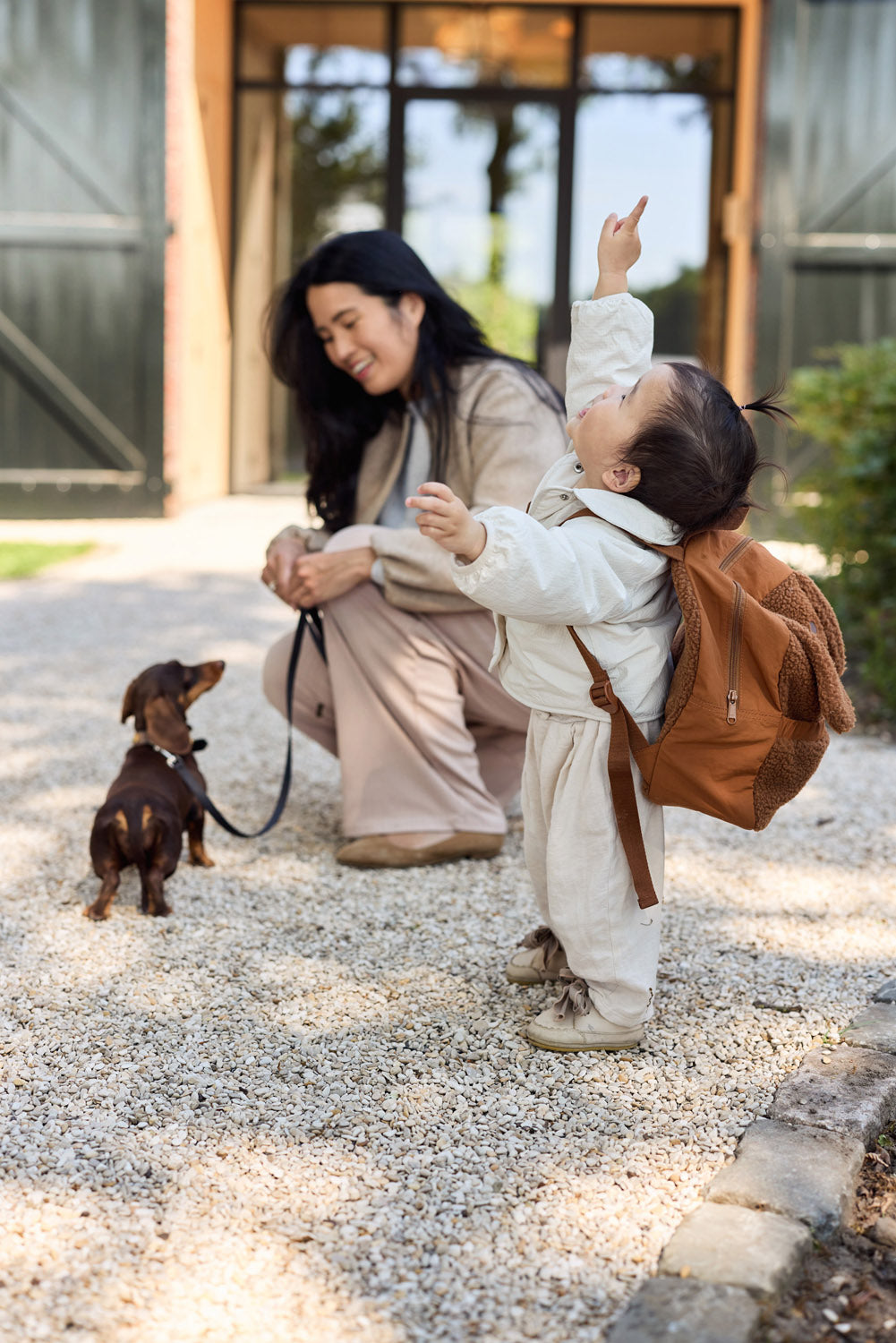 This backpack is perfect for your little one! It features playful ears. The front zipper panel is made of soft teddy fabric, while the sides are reinforced with a polyester mix for durability. Inside, there’s a Velcro pocket for handy storage. The straps have an extra clip for a secure fit. The back is also lined in soft teddy for added coziness. Perfect for little adventurers!
