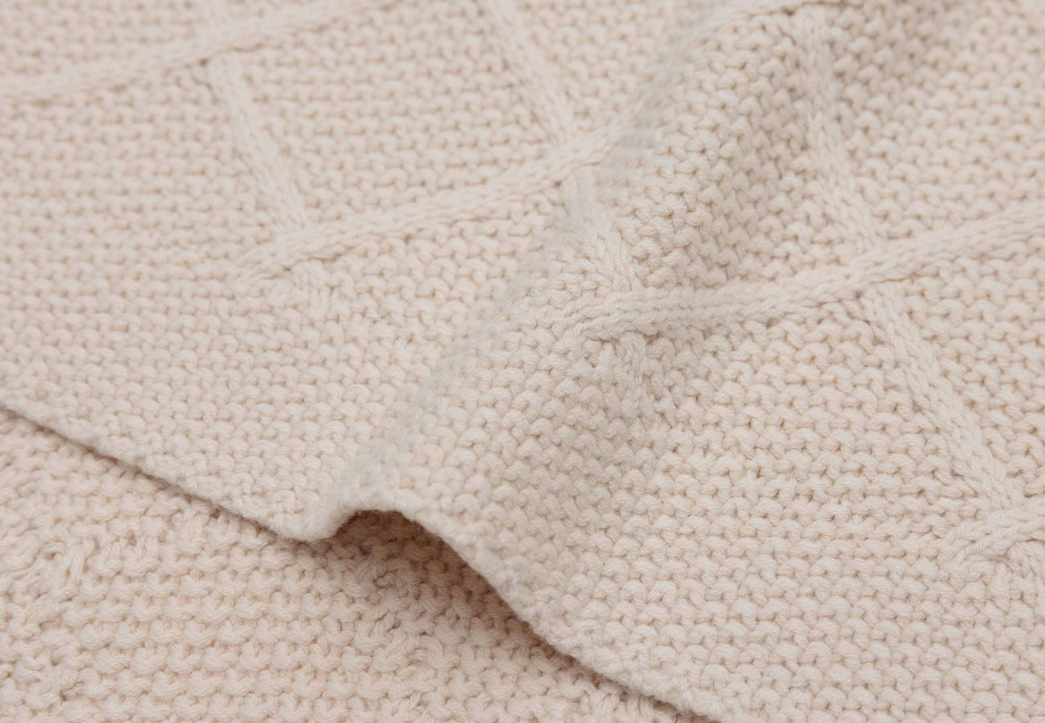 This lovely Check Knit knitted blanket made of cotton will certainly keep your little one warm! Ideal for use in a cot. The blanket can be combined well with one of our sheets. This not only looks great, it also means that you don't have to change the blanket every time. This nice knitted blanket with the checked Check Knit pattern keeps your little one nice and warm and also looks trendy. Will you pick the colour Oatmeal or Biscuit?