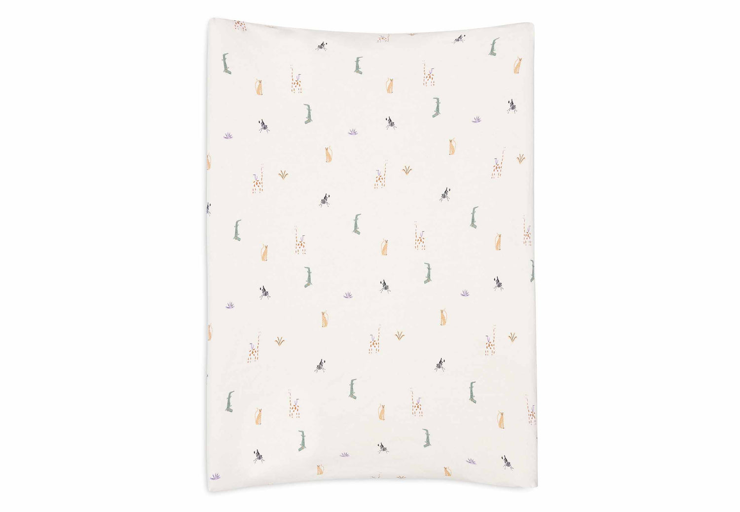 Bring the jungle into your home with this awesome Jungle Jambo changing mat cover! Made of soft Jersey fabric and decorated with zebras, cheetahs and giraffes, this cover is truly an asset. The cover stays securely around the changing mat thanks to the elastic band at the back. You will find that you will never have enough changing mat covers. You change the changing mat cover at least once a day and often several times a day.