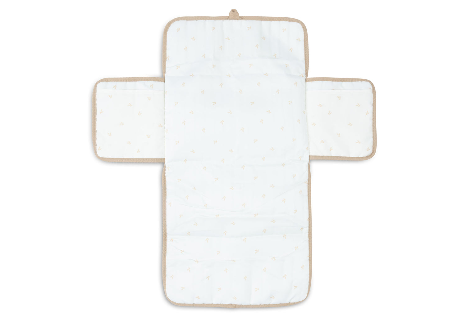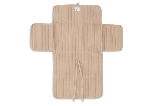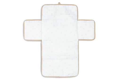 Our trendy changing mat in muslin is the perfect companion for busy parents On The Go! This mat has handy compartments for diapers, so you can have everything to hand while changing. You close the mat with a bow! Available in several pretty colours to perfectly match your baby's room! The outside is made of soft hydrophilic, and the removable inside is decorated with the cute Harvest print. Change your baby comfortably and in style wherever you are!
