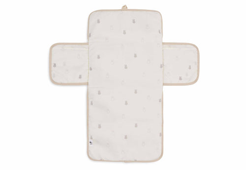 This Miffy changing mat made of teddy fabric is a must-have when you head out with your little friend. This way you always have a cosy safe place to change your little one. You can easily carry the foldable mat with you in your bag and take it out wherever you want. This bouclé changing mat with Miffy detail is wonderfully soft, detachable and water-repellent. The inside also has a Miffy print and has the fine Ivory colour. Had an accident? Just put it in the washing machine. You can easily fold the changing mat again after use and close it with the handy drawstrings at the top.