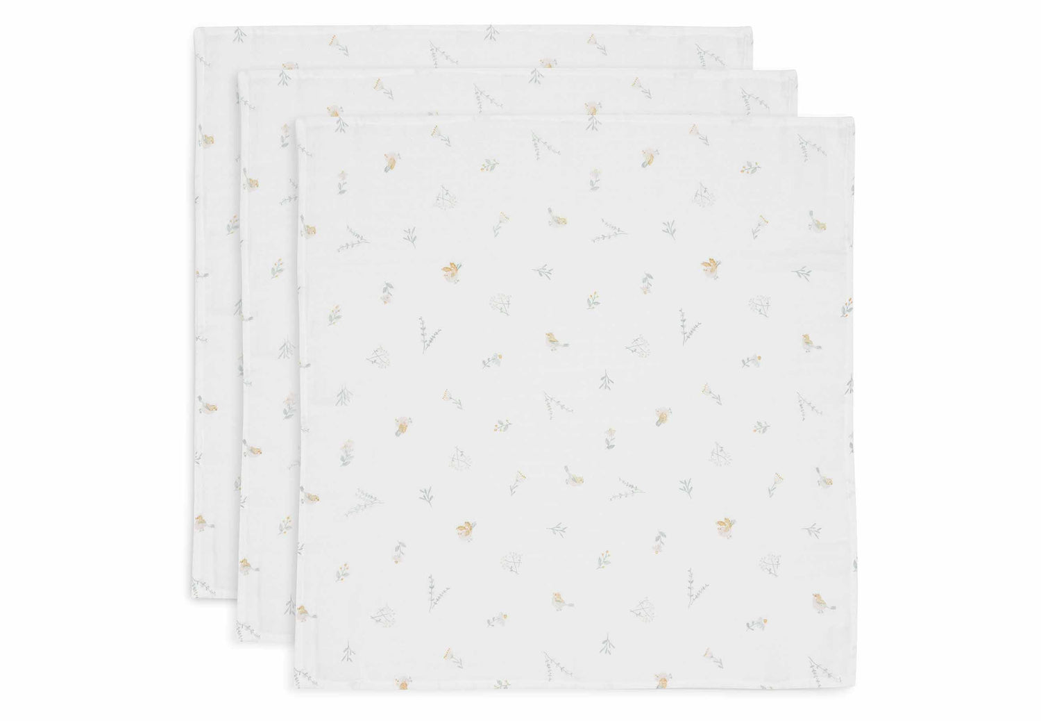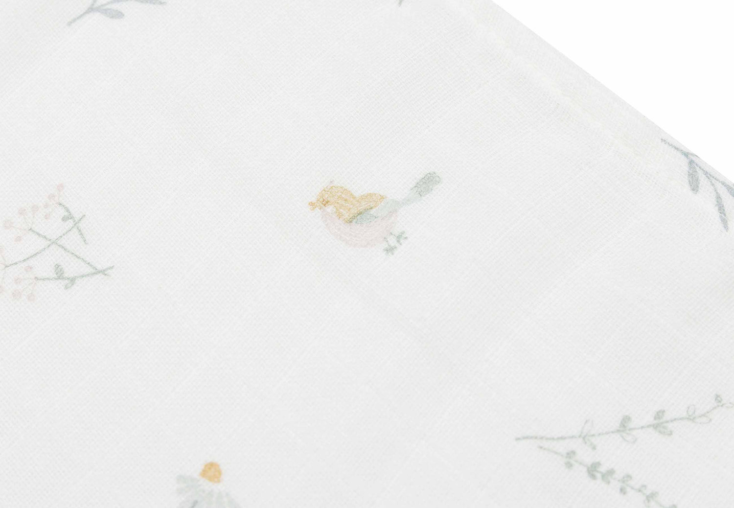 You can never have enough cloths, you can use them for everything and wash them again. This muslin cloth in the Lovely Birds print is imbued with tenderness and elegance, perfect for creating a lovely atmosphere in the nursery. The Lovely Birds print brings an enchanting scene of birds, flowers and twigs and takes you into nature. The colours Wild Rose, Sea Green and Ash Green fit perfectly together and radiate peace and harmony. The background of this cloth has the neutral Ivory colour. Who can use these 3-pack muslin cloths?