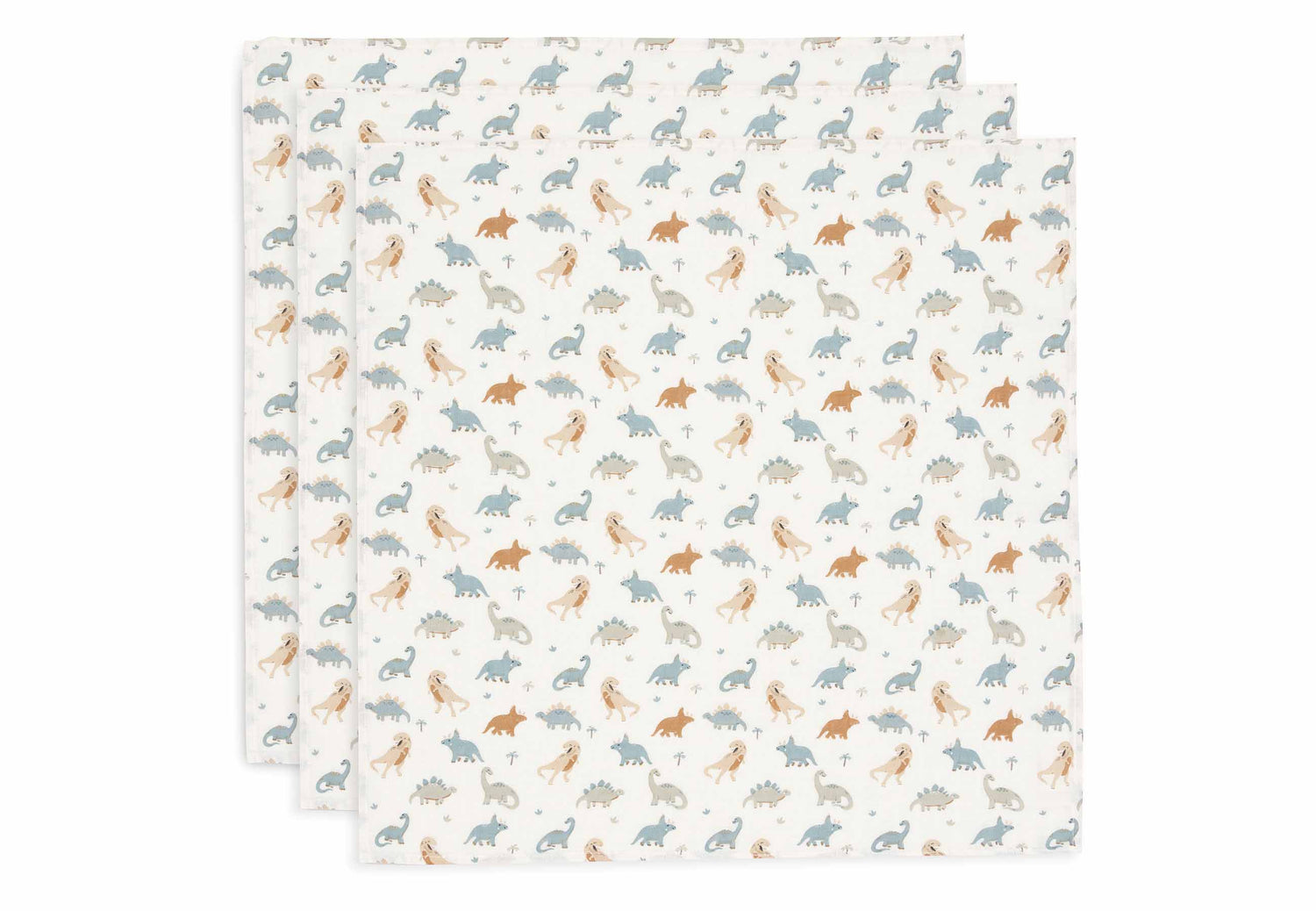 A muslin cloth is an item you regularly use for babies, but also for toddlers. You can use muslin cloths as wash cloths, mouth cloths, changing mats for changing the baby, but also to prevent stains on the fitted sheet in the child’s bed or on the go as a blanket. The possibilities are endless. Our Roarsome print full of dinosaurs is really cool for all little adventurers! Who can use these 3-pack muslin cloths?