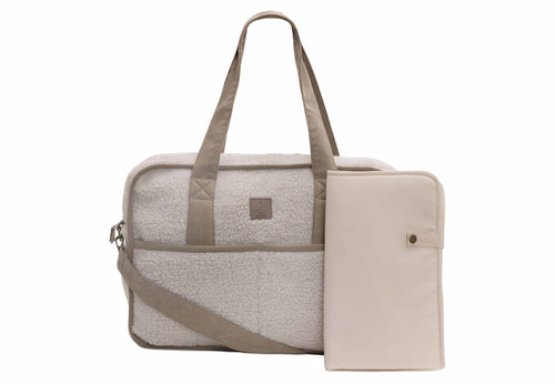 Looking for a unique changing bag with lovely teddy fabric and good handles? Look no further! The Teddy Noé diaper bag is truly a picture and incredibly nice to use. There really is an incredible amount of space in this diaper bag so you can always take all your essentials with you. Adorned with pretty details like a brass-coloured zip and pretty tags, you will totally steal the show with this great mum bag. Additionally, we naturally have plenty of teddy items to combine it with.