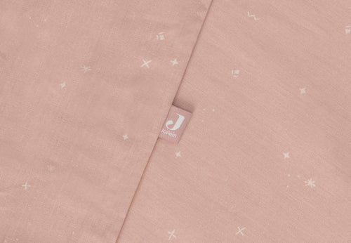 Our cute duvet cover with Twinkling Wild Rose print is suitable for the duvet size that fits in a cot. The cover has a handy opening at the bottom to easily slide the duvet into it, it also comes with pillowcase (60x40cm). We’re obsessed with this newest theme, Twinkling! This enchanting design brings the peace of the stars to nursery, with a soothing print in the soft shade of Ivory. Let your little one dream under a starry night sky. Twinkling is available in two beautiful colours: the tender Wild Rose and the soothing Sea Green.