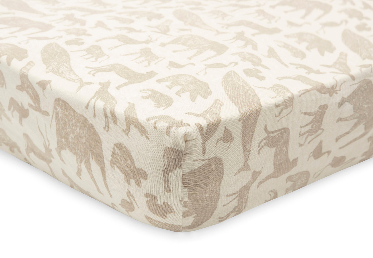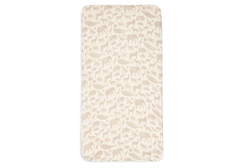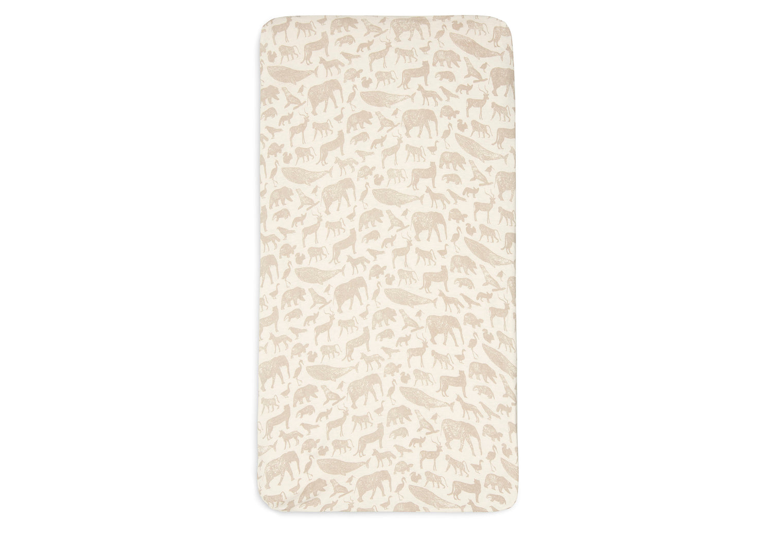 Easily protect the mattress of your baby or toddler with this fun little fitted sheet. The adventurous Animals print will take your mini on an adventure in their dreams. The fitted sheet fits perfectly around the mattress with the elastic bands in each corner. You can perfectly combine the fitted sheet with the blankets from the Grain Knit theme. Available in various sizes, for cot and cradle, in Olive Green and Nougat. Tip: a fitted sheet of cot size is also perfect for a changing mat or a travel cot.