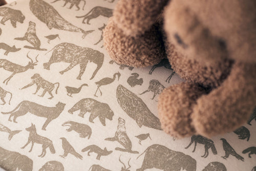 Easily protect the mattress of your baby or toddler with this fun little fitted sheet. The adventurous Animals print will take your mini on an adventure in their dreams. The fitted sheet fits perfectly around the mattress with the elastic bands in each corner. You can perfectly combine the fitted sheet with the blankets from the Grain Knit theme.