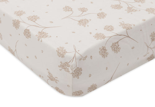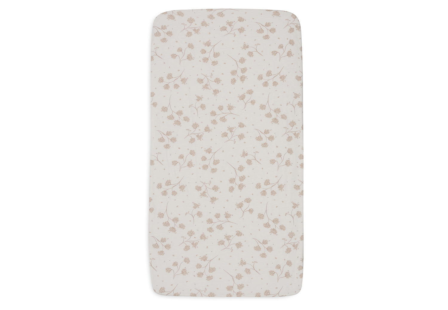 Let your little one dream peacefully on this soft jersey fitted sheet. The Leafy Dreams print with playful leaves gives the bed a cozy and fresh look. The fine, stretchy fabric hugs the mattress perfectly and feels wonderfully soft. This fitted sheet is perfect to combine with our Ruffle sheet!