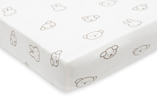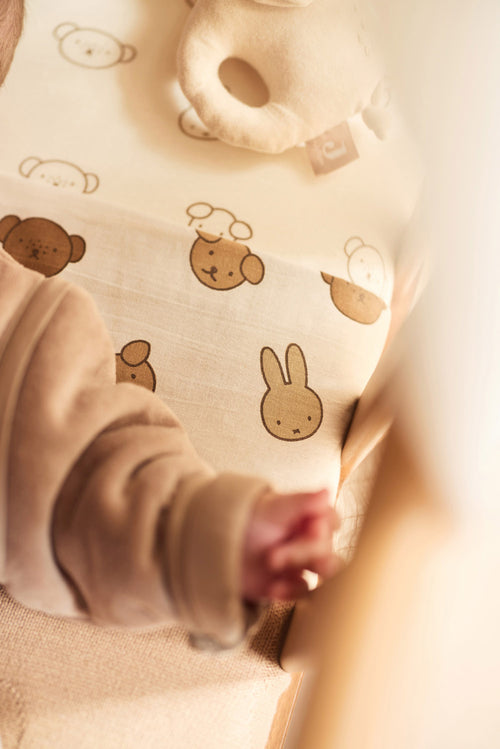 Let your little one sleep soundly on this soft jersey fitted sheet with a sweet Miffy and Friends print. The stretchy fabric ensures a perfect fit and feels wonderfully soft on the skin. Miffy and her friends add a playful and cozy touch to the nursery. Available in 40/50x80/90 cm, 60x120 cm and 70/75x140/150 cm. Elastic corners ensure the sheet stays in place for a comfy sleep.