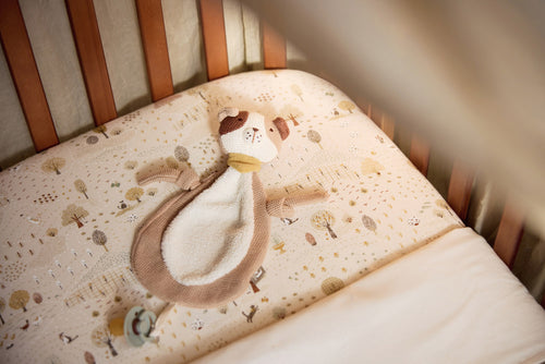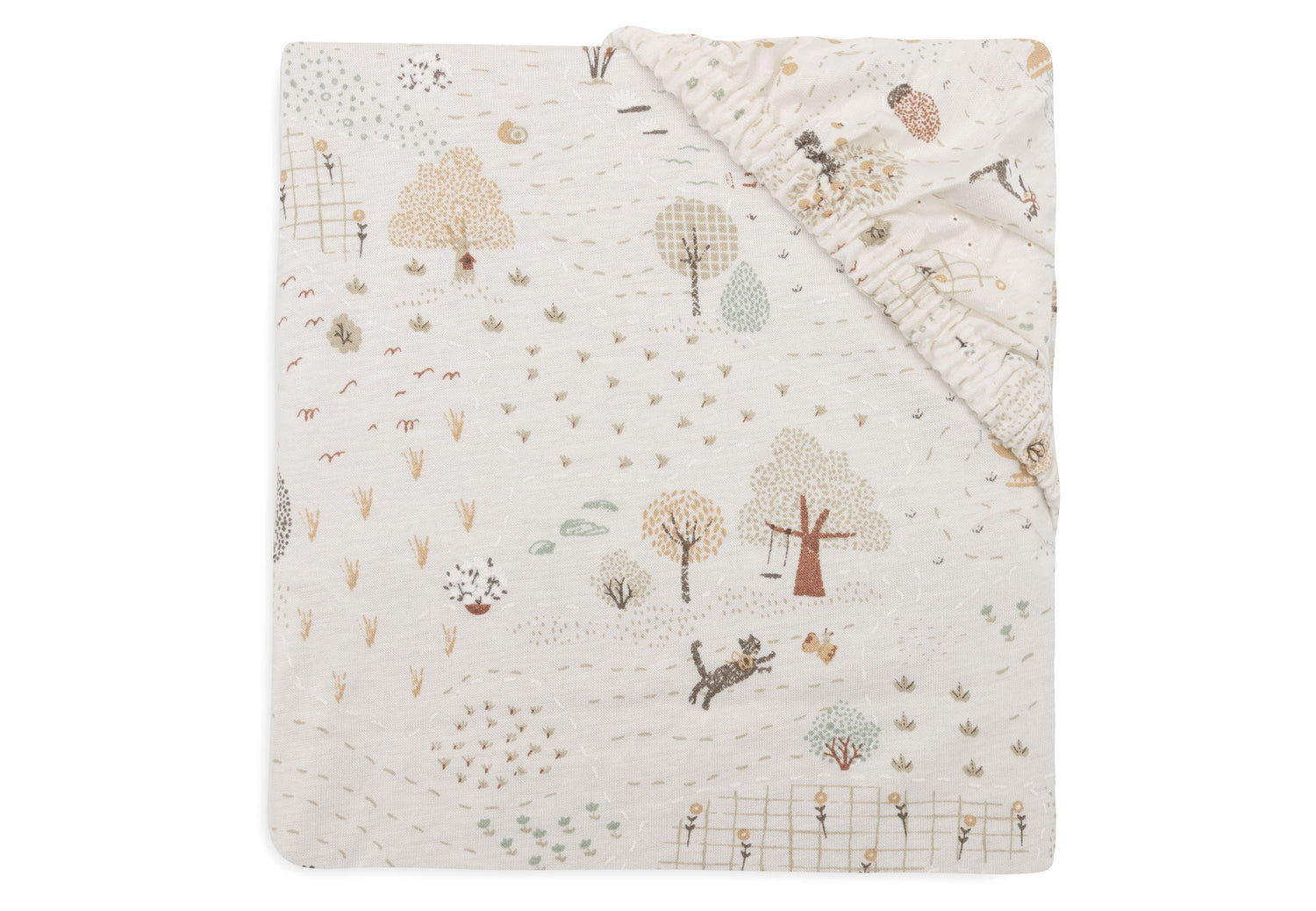 With the Jersey Tiny Park fitted sheet from Jollein, your little one sleeps wonderfully soft. The fitted sheet is made of stretchy and breathable jersey cotton, ensuring a perfect fit on the mattress and a comfy feel. The all-over Tiny Park print with cute park adventures and animals creates a cozy atmosphere in the nursery.