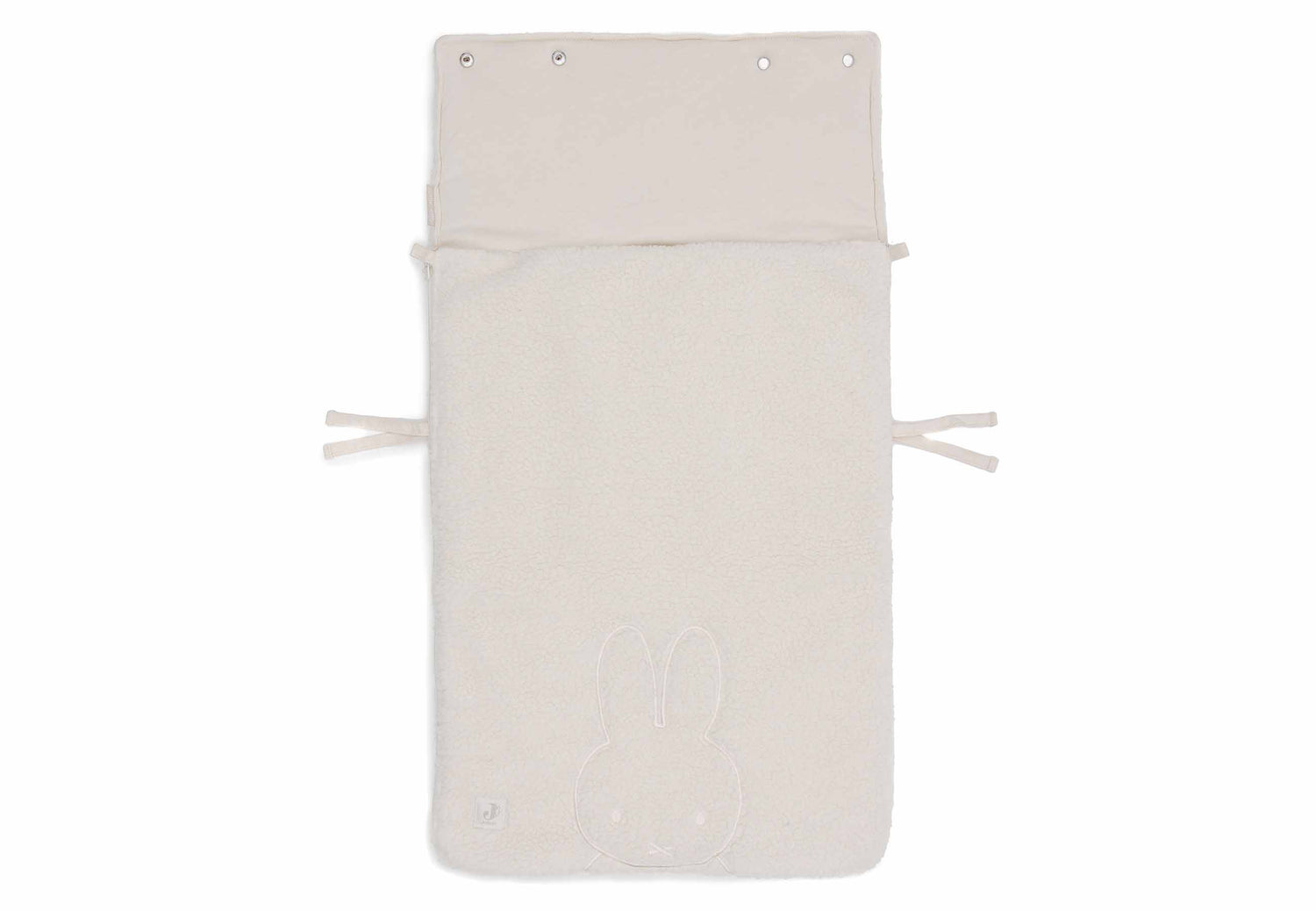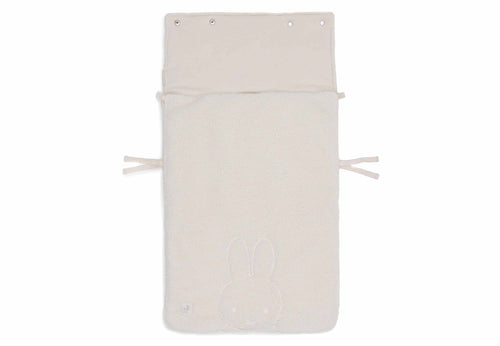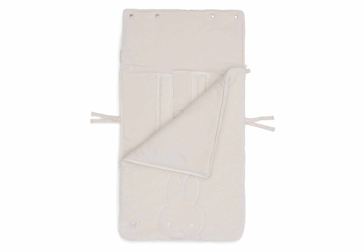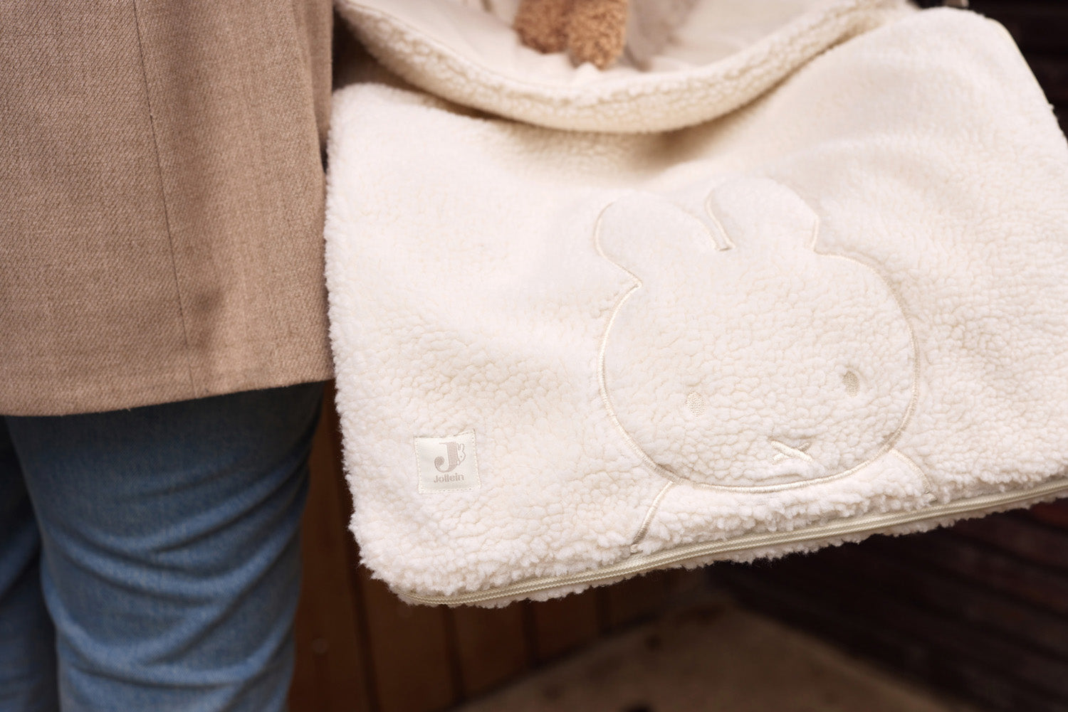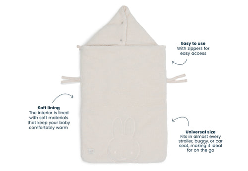A footmuff is a true asset. You can easily place your baby in the footmuff by completely unzipping the bag first. You can also easily remove your baby from the car seat by unzipping the footmuff completely. In short: an incredibly practical comfort bag for your baby. The footmuff has openings in the back to make attaching belts very easy. It is a universal footmuff for the Maxi Cosi and any other brand of category 0 car seat with three or five-point harness. You can also use this comfort bag in the pram. So your baby will be wrapped up and warm for the walk in no time. Discover the Miffy collection of teddy fabric in the colour oatmeal and match it with other Miffy items from our collection. This footmuff does not have a TOG rating, as it is designed to keep your little one warm on the go and not to be used as a sleeping bag.