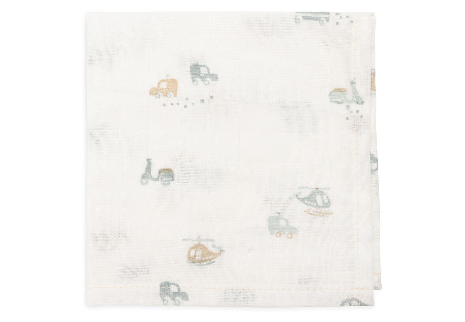 You never have enough muslin mouth cloths, you can use them for everything and they are easy to wash. These muslin mouth cloths are incredibly cute and perfect for keeping faces clean and fresh. Made of soft muslin, it's so wonderfully gentle on the skin. With a 3-pack like this, you're always covered! How cute is this On The Go print with cars, helicopters and scooters.