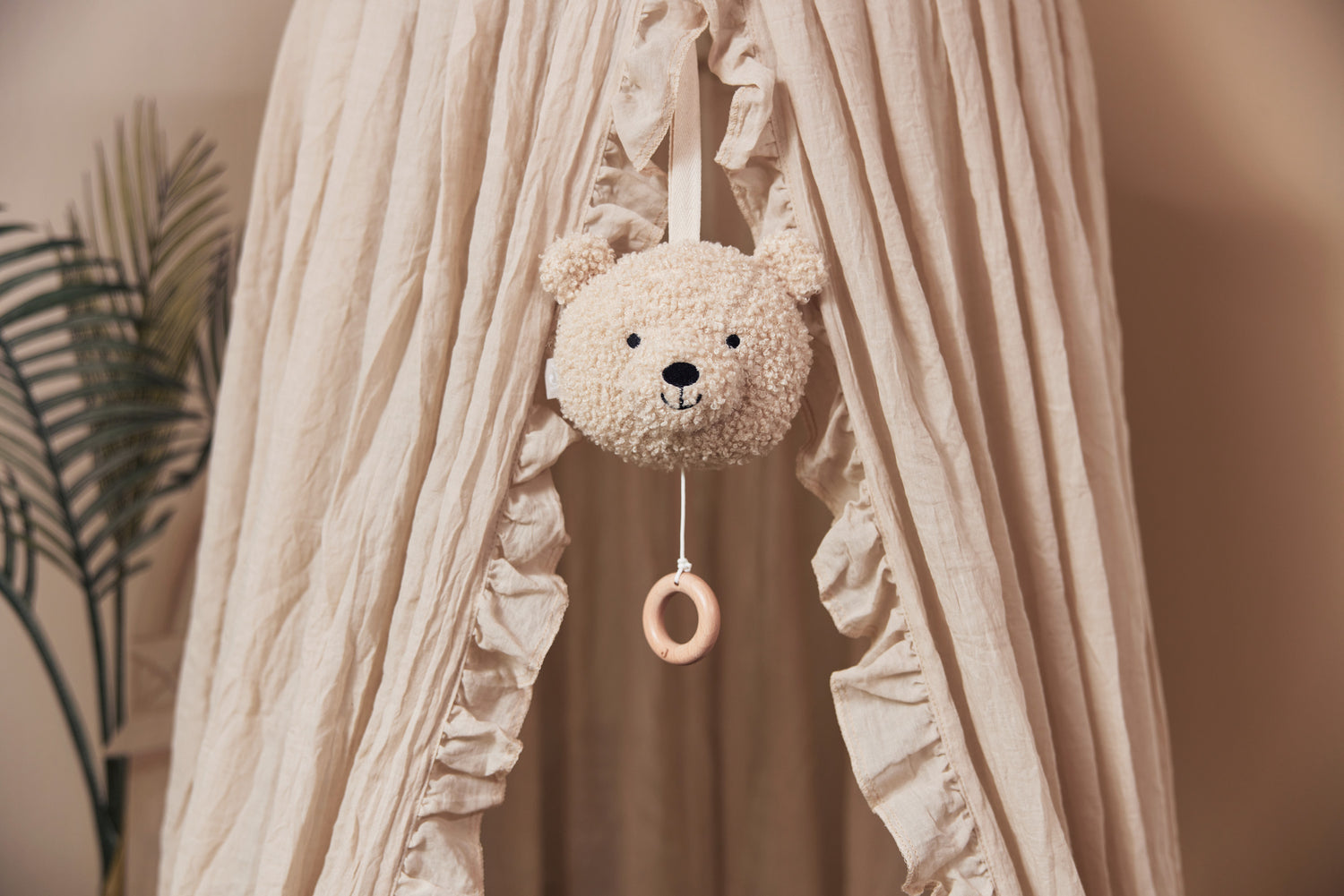 This sweet little bear will sing for your little one! This cute musical hanger plays the song ‘’you are my sunshine‘’ when you pull the string. This can have a soothing effect on your baby. You match this musical hanger well with the Teddy Bear cuddly toy or dummy cloth, for example. Tip: play the music regularly close to your pregnant belly and you will see that it is familiar and soothing for your little one when they have just been born. This musical hanger therefore makes a nice pregnancy gift. It will also be popular as a maternity present. Will you pick the colour Olive Green or Wild Rose?