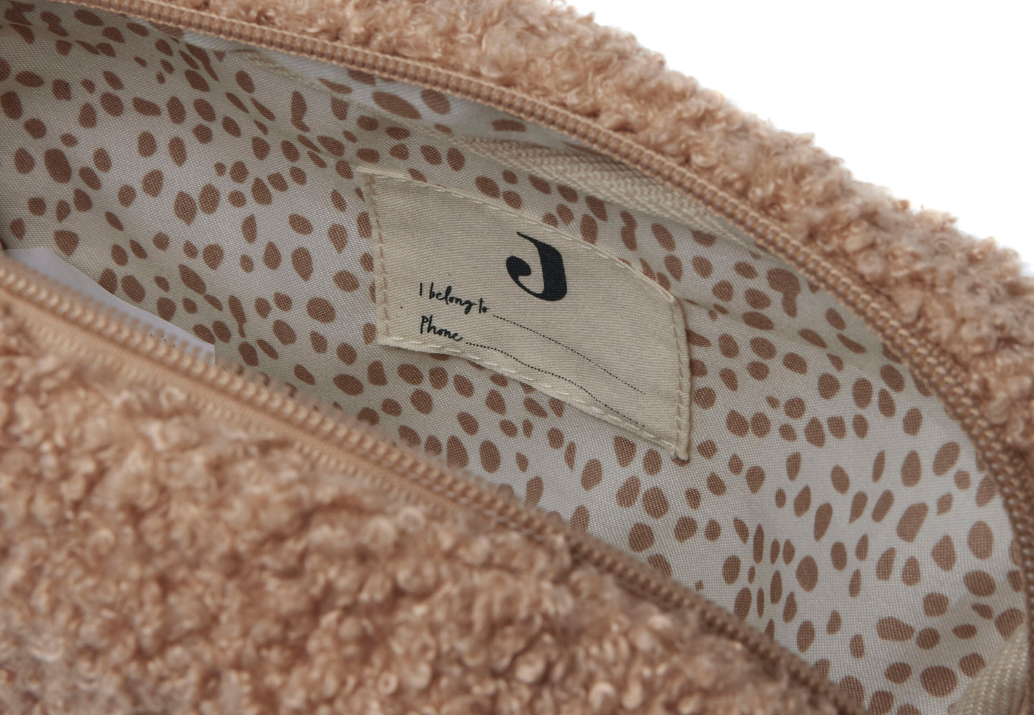 This pouch is made of soft Teddy and comes from the Boucle theme. It is available in natural and biscuit.