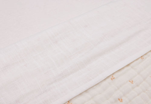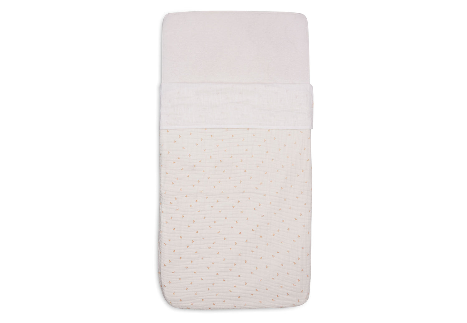 Upgrade your little one's cradle or cot with our sheet of linen-look slub fabric. Available in the stylish colours ivory and nougat, or go for a charming Harvest print. Create a cosy and trendy atmosphere in your baby's room, by combining this item with a knitted Jollein blanket.