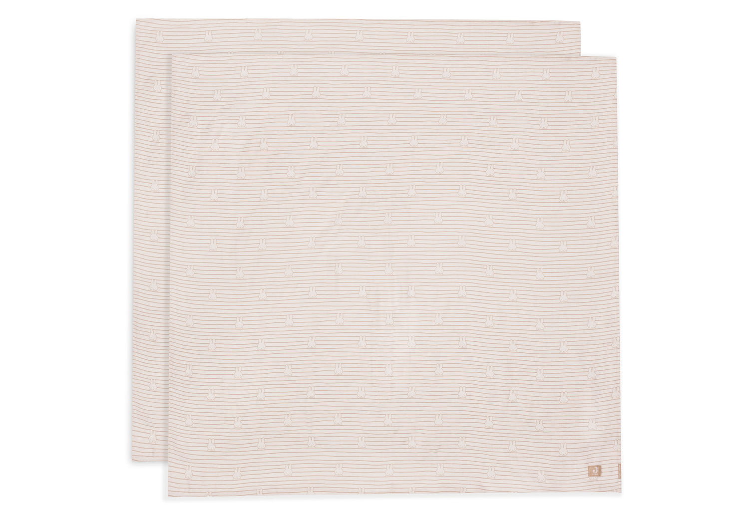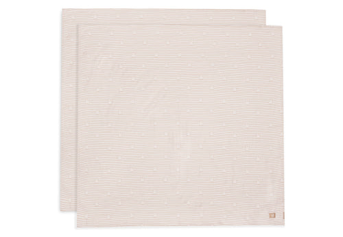 Our muslin cloths are the perfect companions for both small and big adventures with your little one. The 'Small' version, with a practical size of 70x70 cm, comes in a practical 3-pack. These cloths are perfect for on the road, in the stroller or simply for daily use. The 'Large' version has a size of 115x115 cm and comes in a practical 2-pack. These bigger cloths are perfect for wrapping up your little one, to use as a spit cloth, or for other daily needs. Both versions of our muslin cloths have a playful print with stripes and cute Miffy faces. Practical and stylish, these cloths are essential for you and your baby. Keep your little one comfortable and surrounded by softness with our muslin cloths. Our muslin cloths are the perfect companions for both little and big adventures with your little one. The 'Small' version, with a practical size of 70x70 cm, comes in a practical 3-pack. These cloths are perfect for on the road, in the stroller or simply for daily use. The 'Large' version has a size of 115x115 cm and comes in a practical 2-pack. These bigger cloths are perfect for wrapping up your little one, to use as a spit cloth, or for other daily needs. Both versions of our muslin cloths have a playful print with stripes and cute Miffy faces. Practical and stylish, these cloths are essential for you and your baby. Keep your little one comfortable and surrounded by softness with our muslin cloths. Available in navy and biscuit.