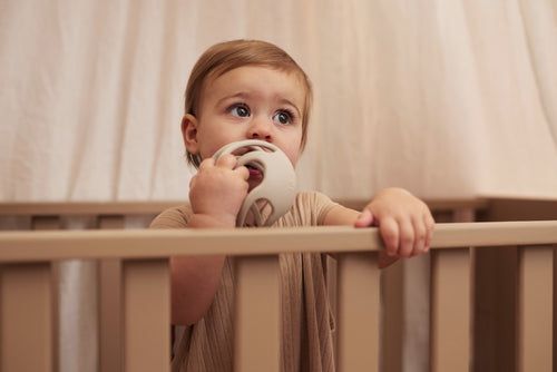 This silicone teething ring is perfect for little ones who have started teething and great fun to play with too! With a diameter of 9.5 cm, the ball is ideal for little hands. Thanks to the toy rings, you can easily attach the ball to the pram, so you won't lose it on outings. Made of 100% silicone, BPA- and PVC-free, this teething ring offers extra safety for your little one. Also a great maternity gift!