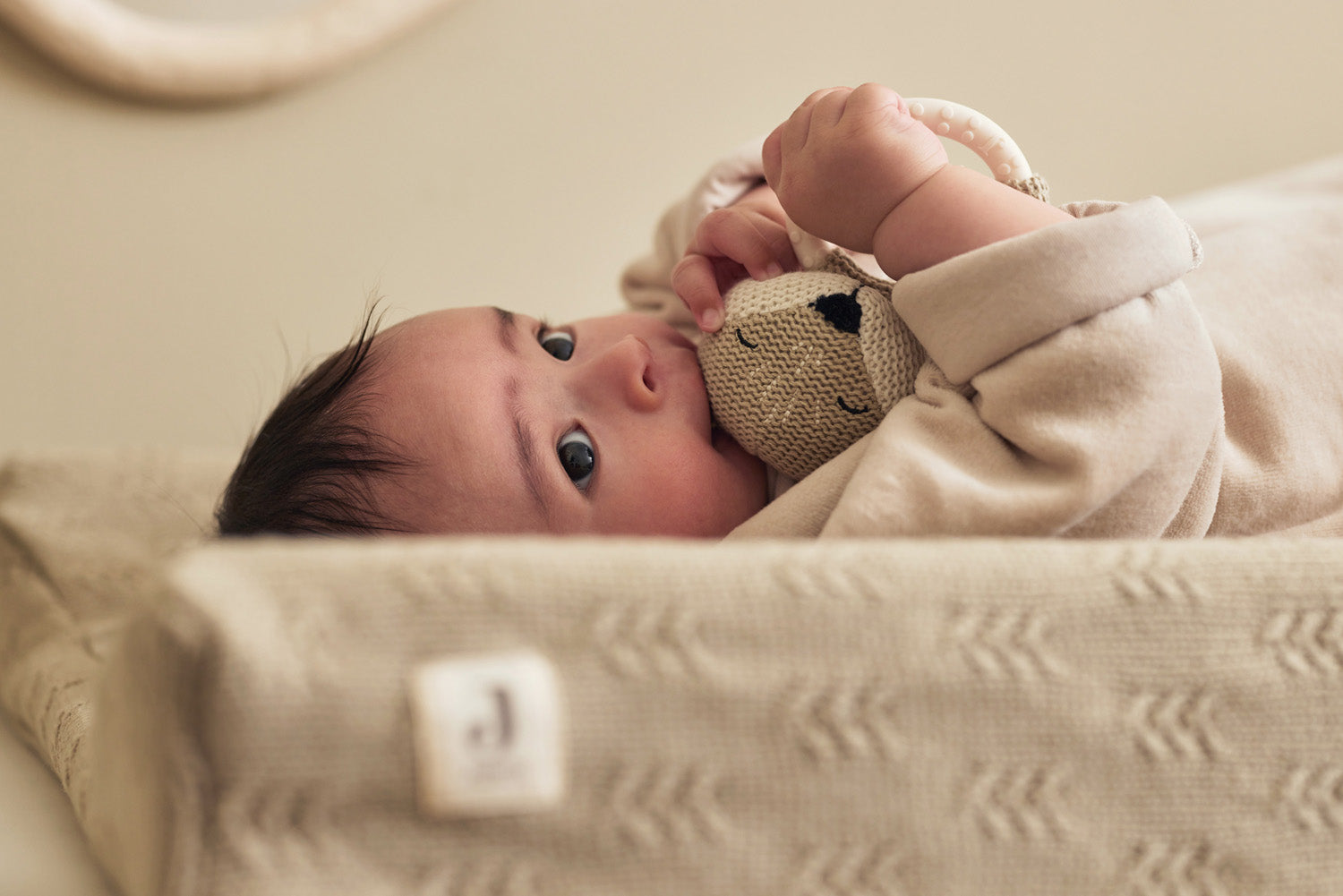 Is your little one experiencing teething discomfort? This teething ring will provide relief, and it's also fun to play with, because there are subtle bells in the knitted little head. Do you want the giraffe, fox or bear? Tip: also a fun maternity gift!