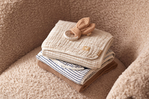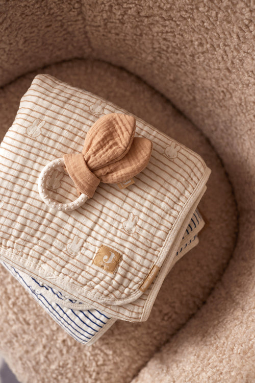 Our silicon teething ring with adorable bunny ears is the perfect companion for your little one while they're teething. It offers relief and is also very fun to play with. The soft bunny ears make a crackling sound, which stimulates the curiosity of your baby and increases their playing fun. Furthermore, this teething ring is completely BPA-free, so you can let your baby suck and chew on it without worries. Give your little one relief and fun with our cute, safe teething ring. Shop the Bunny ears teething ring in olive green, wild rose and moonstone.