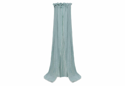 Yes, it’s part of the collection again: the vintage veil! A veil turns the cot into a cosy place to sleep. You’ll see: once the veil is up, it’s the finishing touch to the nursery. It provides atmosphere and security. With the matching peaked pole, you can hang a cot veil very easily without having to drill holes in the ceiling or wall. Will you choose this beautiful veil in the colour Wild Rose or Sea Green? Both colours match perfectly with the other items in our collection and bring atmosphere to every nursery.