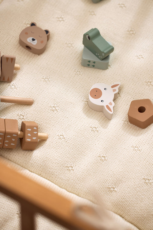 Time for your little one to build and to play! What better way to do that with a wooden stacking tower of 3 different jungle animals? These towers consist of different blocks and colours and help your little one to distinguish them. This is why playing with wooden toys is also extremely good for developing fine motor skills. Our wooden toys are also sustainable and made from FSC 100% certified wood. The Giraffe in Caramel colour, the Crocodile in Ash Green and the Cheetah in Biscuit colour make this stacking tower a joy to see!