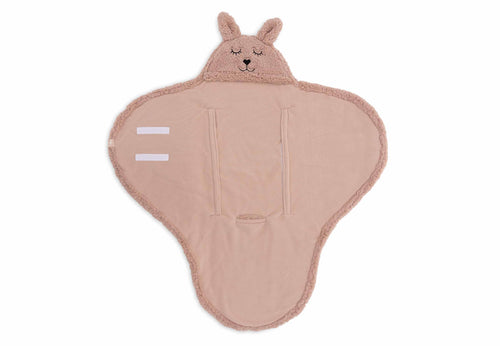 Wrap blanket with guaranteed mega high cuteness factor. The fabric has a fluffy fur look on the outside and wonderfully comfortable softness on the inside. Wrap your baby in this wrap and close the blanket with the practical Velcro strips. Put on the hat to go with it and look, those cute little ears and ditto bunny face on the hat. So, so cute! This wrap can be used from birth. And also very practical to use in baby's first car seat. Will you choose the colour Wild Rose or Sea Green?